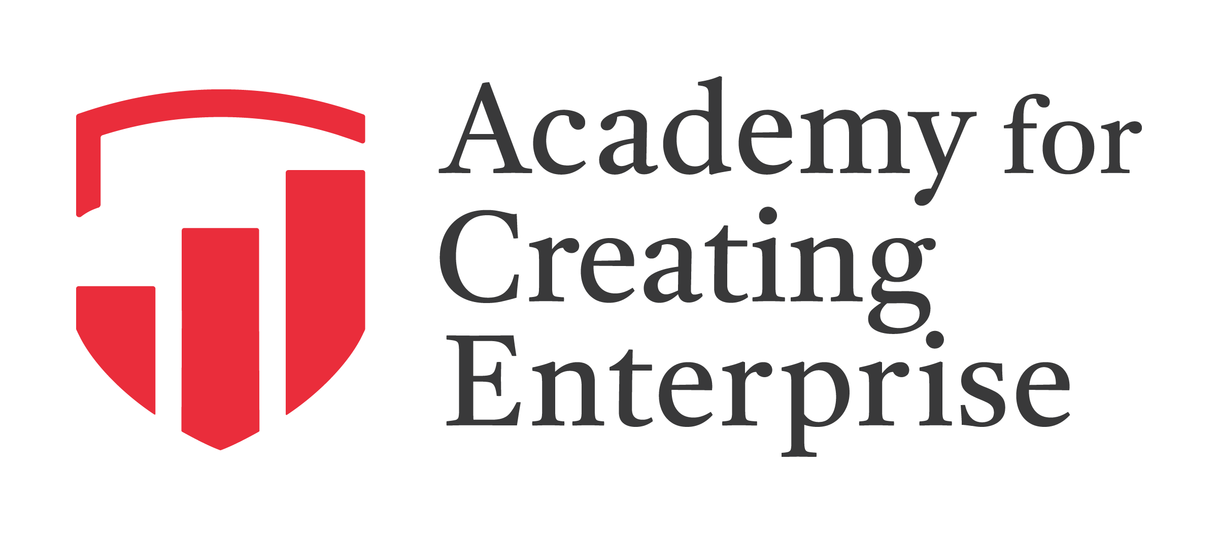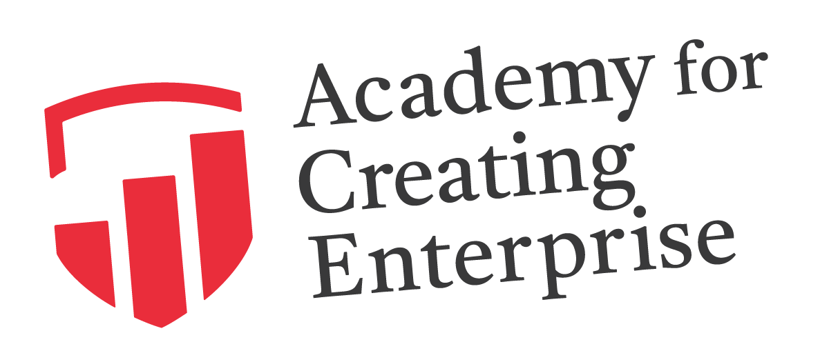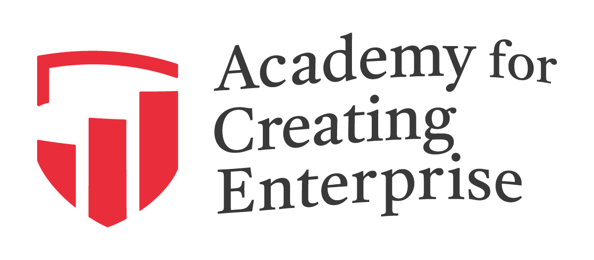 The primary version of the logo is the updated shield in Academy Red with the name of The Academy in Academy Dark Gray stacked in three rows on the right side.
